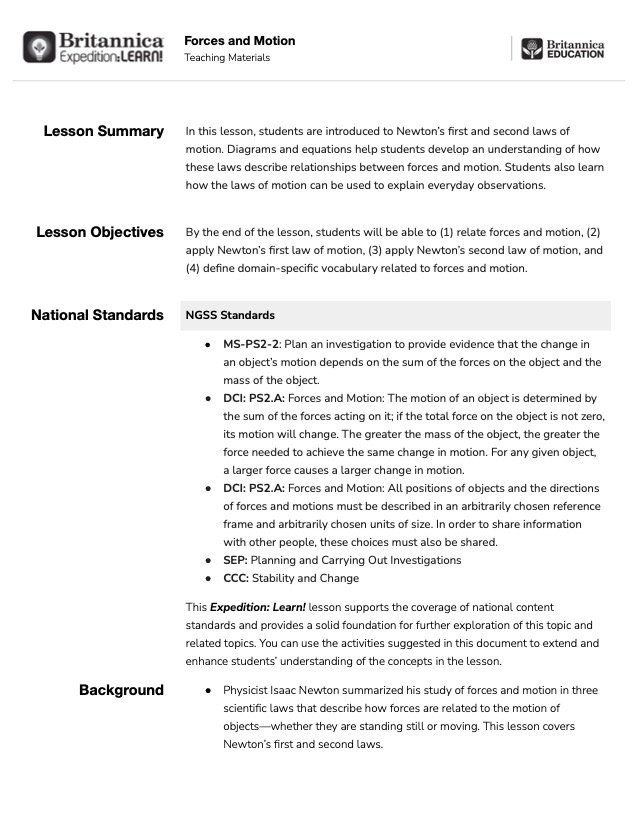 Forces and Motion lesson within Expedition: Learn