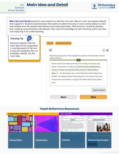 Expedition: Learn! is Britannica’s all-in-one instructional lesson platform. Grounded in decades of research and evidence-based practice, lessons can be used for whole-class instruction, small-group reteaching, or independent practice.
