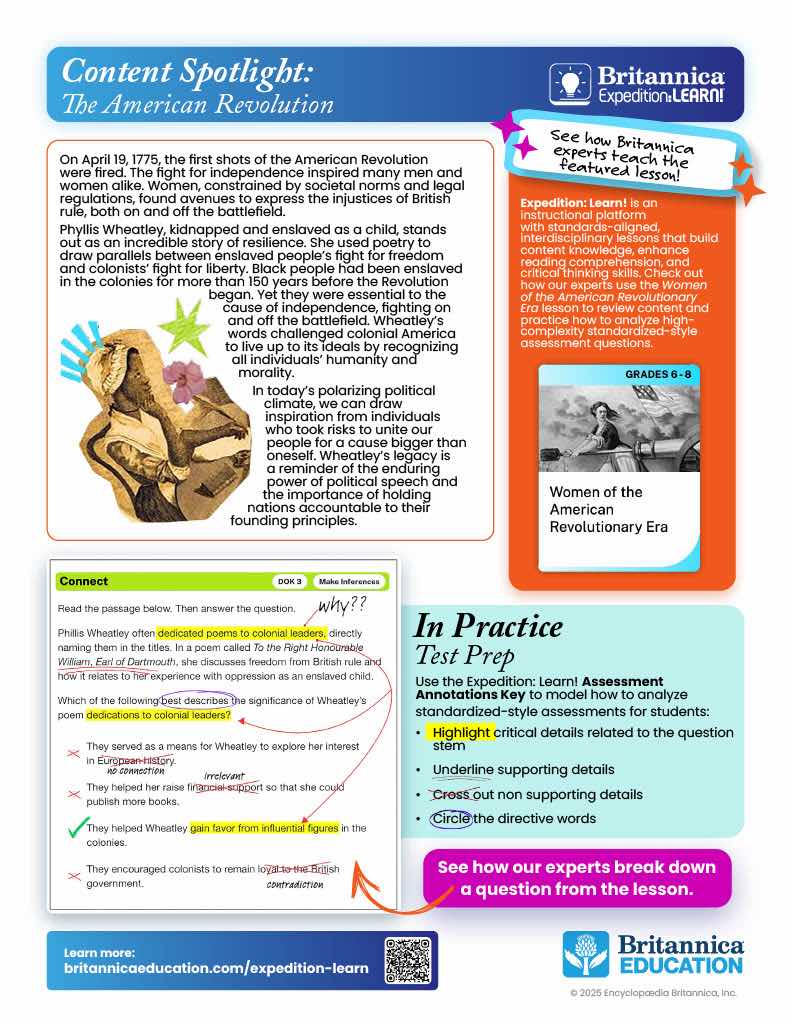 From US history to civics and government, Britannica Expedition: Learn!’s standards-aligned library of more than 300+ lessons has got you covered!
