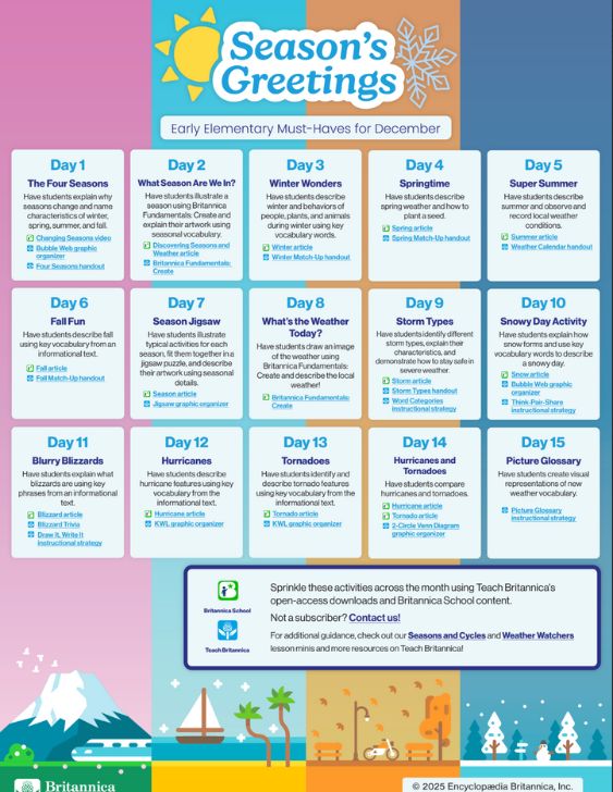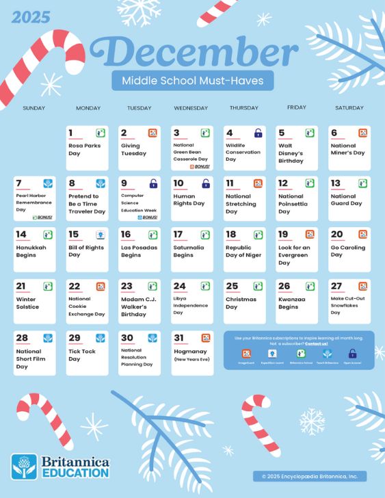 Download these interactive calendars to access daily Britannica Education fun all month long.