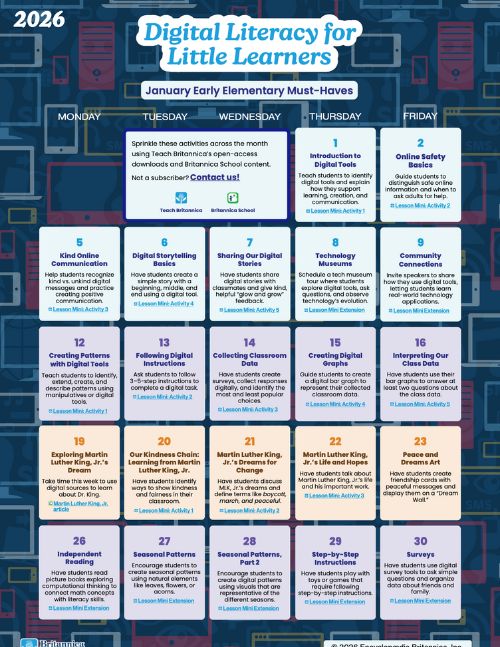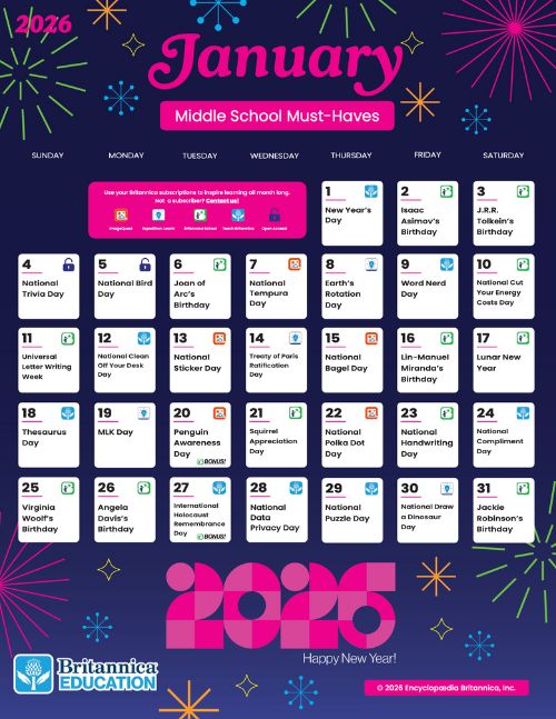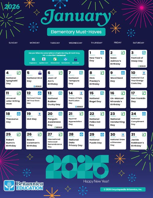 Download these interactive calendars to access daily Britannica Education fun all month long.