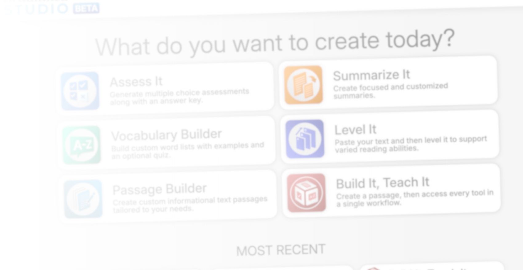 With Level It, Summarize It, or Vocabulary Builder, Studio helps tailor content for advanced learners, ELLs, and emerging readers in a single step, without rewriting from scratch.