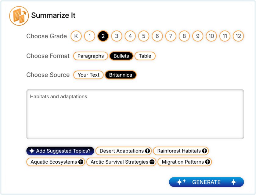Every output starts with Britannica’s verified, bias-aware content, so it’s accurate, clear, and classroom ready.